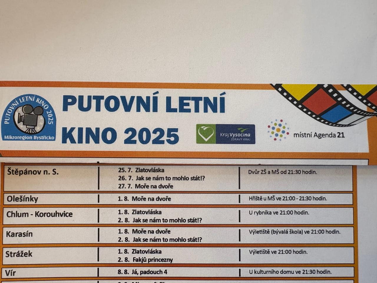 Městys Štěpánov nad Svratkou ve spolupráci s Mikroregionem Bystřicko vás zve na LETNÍ KINO, které bude promítáno na dvoře ZŠ OD 21.30 hodin, občerstvení zajištěno.
