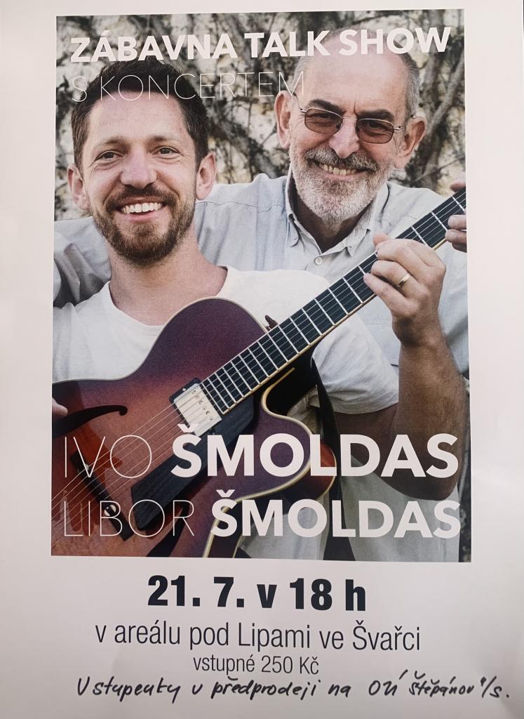 Obec Koroužné vás srdečně zve na zábavnou talk show Ivo Šmoldase s koncertem jeho syna Libora Šmoldase, která se uskuteční 21.7.2022 v 18.00 hodin ve Švařci pod Lipami. Vstupné 250 Kč, vstupenky lze zakoupit na ÚM ve Štěpánově nad Svratkou.